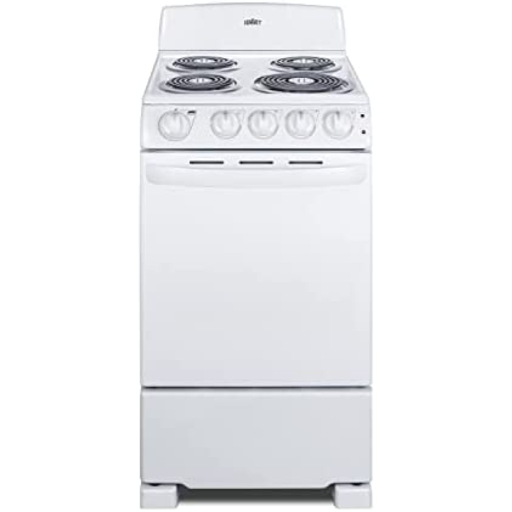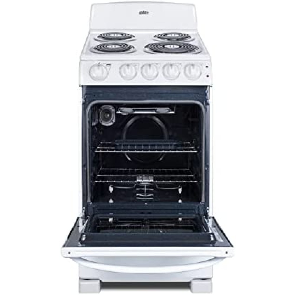 Summit Appliance RE203W 20? Electric Range with 4 Coil Elements, White, 2.3 CuFt Oven Capacity, ADA Compliant ON Indicator Lights for Oven and Elements